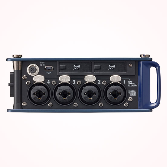 Record on two SD/SDHC/SDXC cards*, up to 512 GB each, simultaneously, allowing you to instantly backup or split recordings (for example, save eight tracks onto one card and a stereo mix onto another).