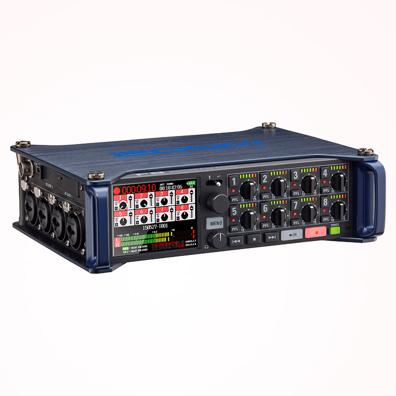 The F8 is not only versatile and feature rich, it is the smallest field recorder with eight XLR combo inputs ever made. Weighing just 2.1 pounds (without batteries), its aluminum chassis is both rugged and durable.